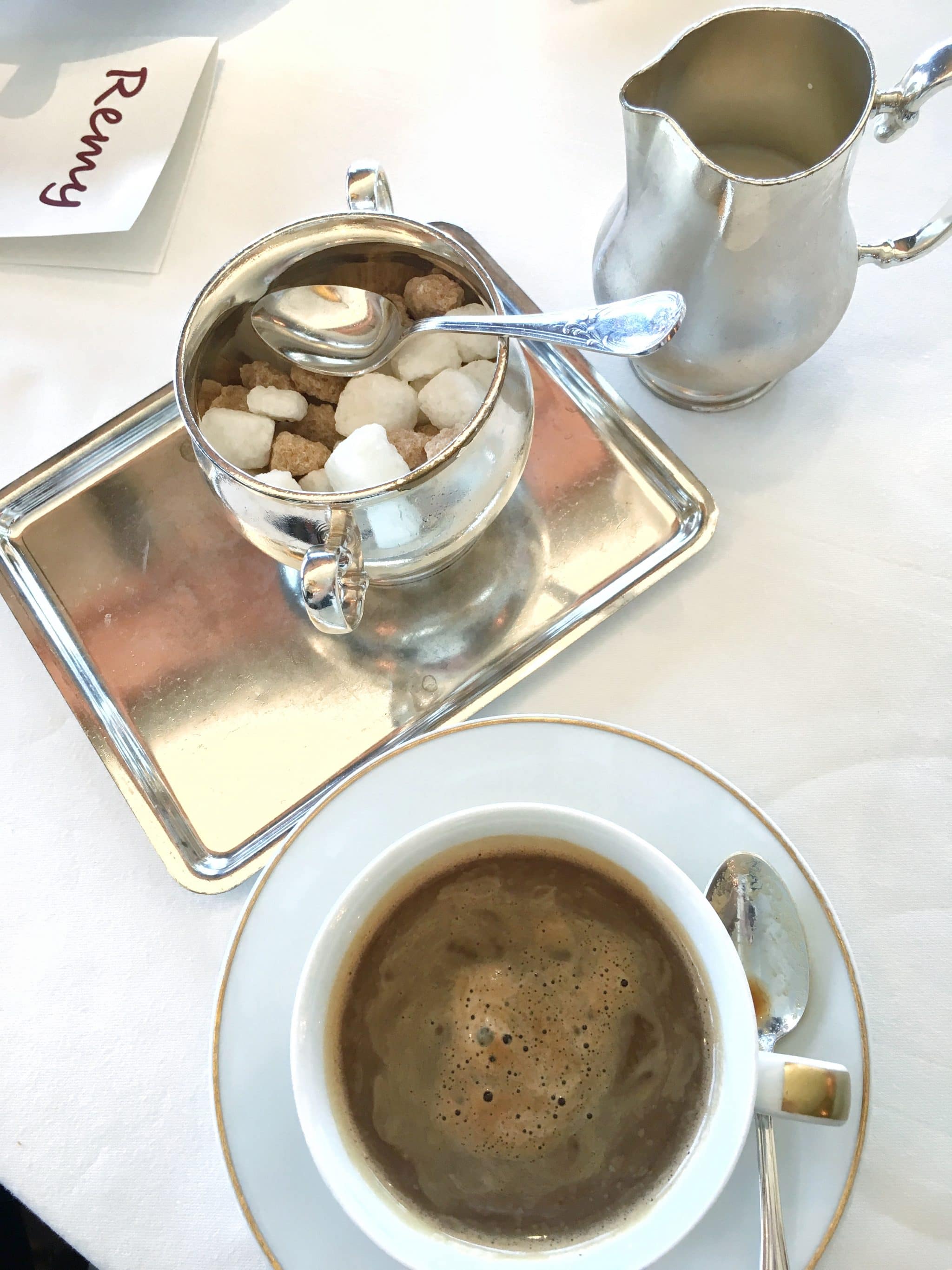 We start with the beverage service, Free Trade Coffee with sugar cubes and plant based creamer.