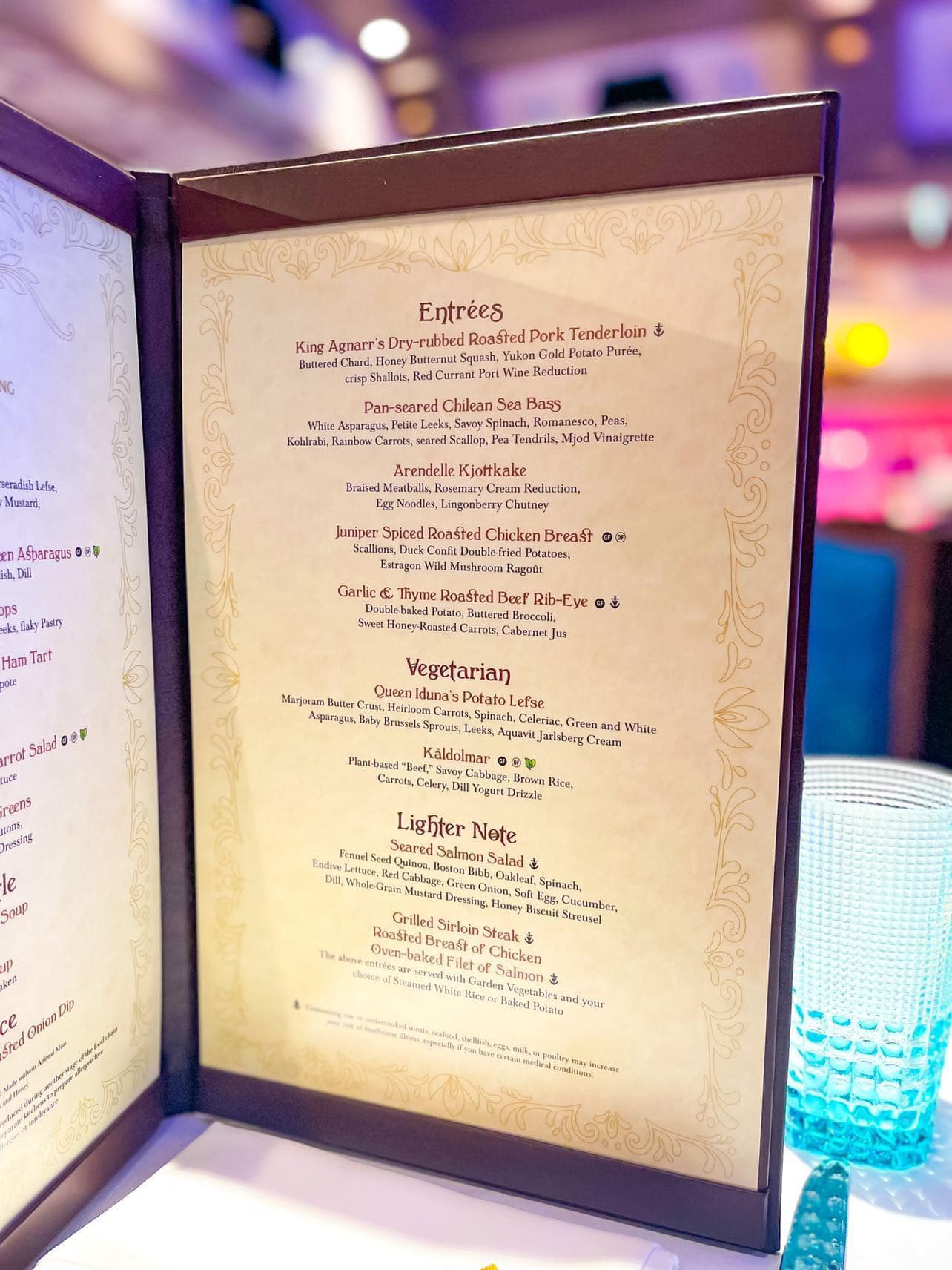 With the Disney Wish, we’ll get a new high-end dining experience, Enchante. In addition, there will be 3 additional rotating dining locations: Arendelle – a Frozen Dining Adventure, Worlds of Marvel dining experience, and 1923 a golden age of Hollywood-themed dining room.
