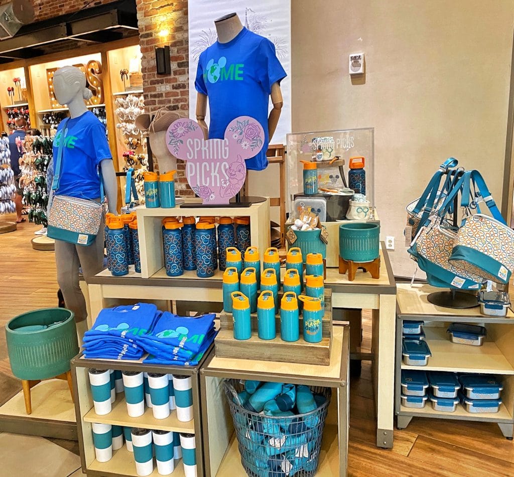 Disney has made some major steps toward reducing single-use plastics by removing plastic straws, offering Disney Reusable Silicone Straws and Disney Reusable Utensils for sale, and of course water bottles. They’ve now released a whole new line of reusable/sustainable merchandise that is making its way to the parks and Disney Springs. We found this collection at World of Disney in Disney Springs, but the line has also been spotted at Disney’s Animal Kingdom.