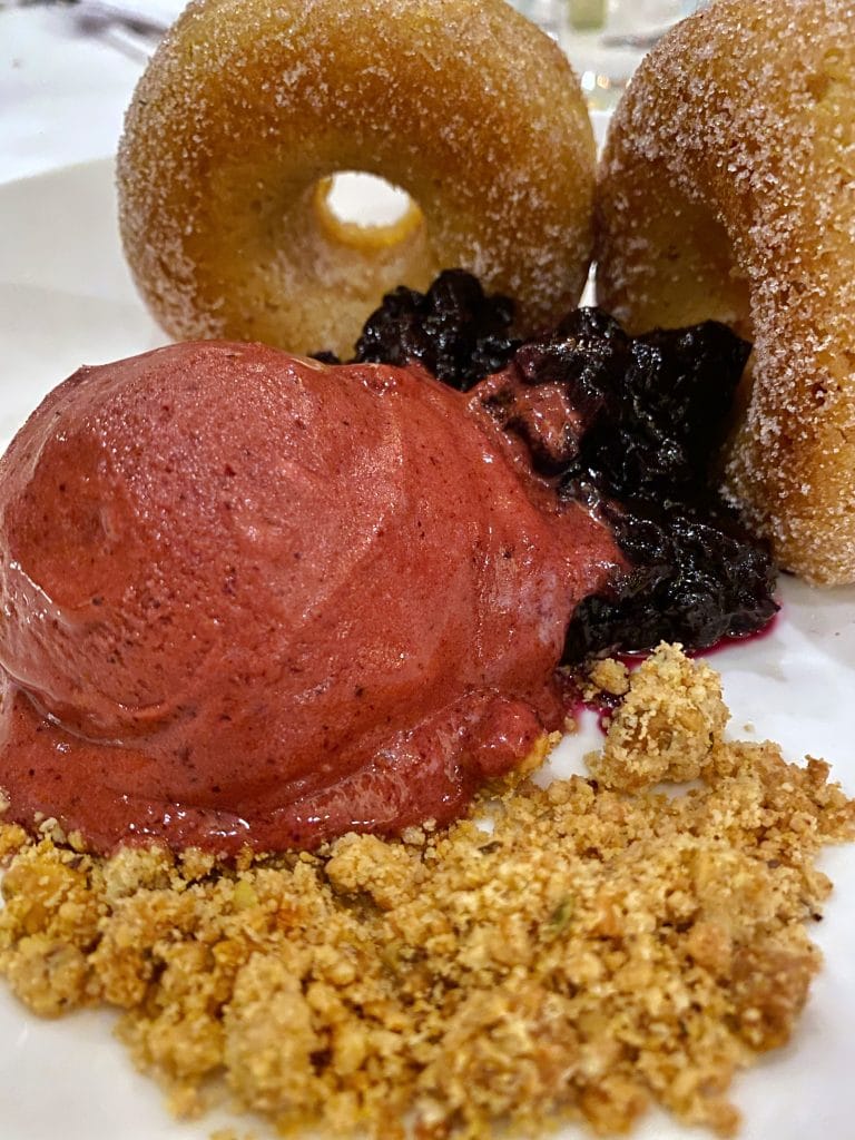 Our California Grill experience ended with the plant-based dessert item: vegan Blueberry Doughnuts. There used to be a second option of a cashew cheesecake, however, that is no longer on the menu as of now.