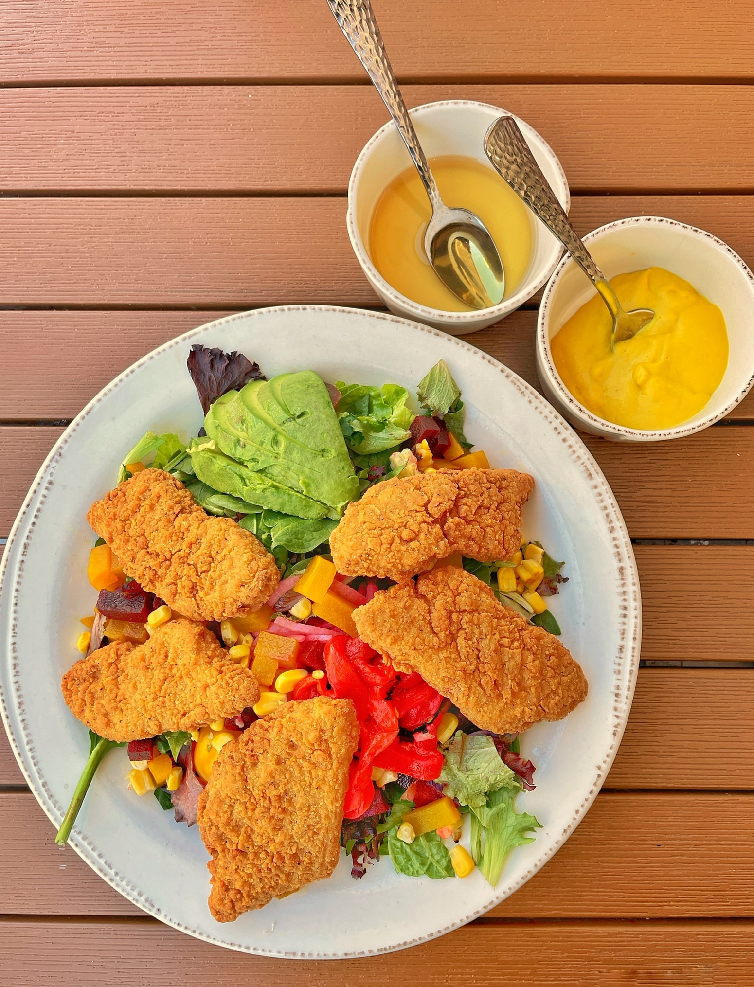 The peas and carrots tasted like straight up frozen veggies, so I wouldn’t get those again, but the sweet potatoes were delicious as were the tenders. The corn is also a great choice.
