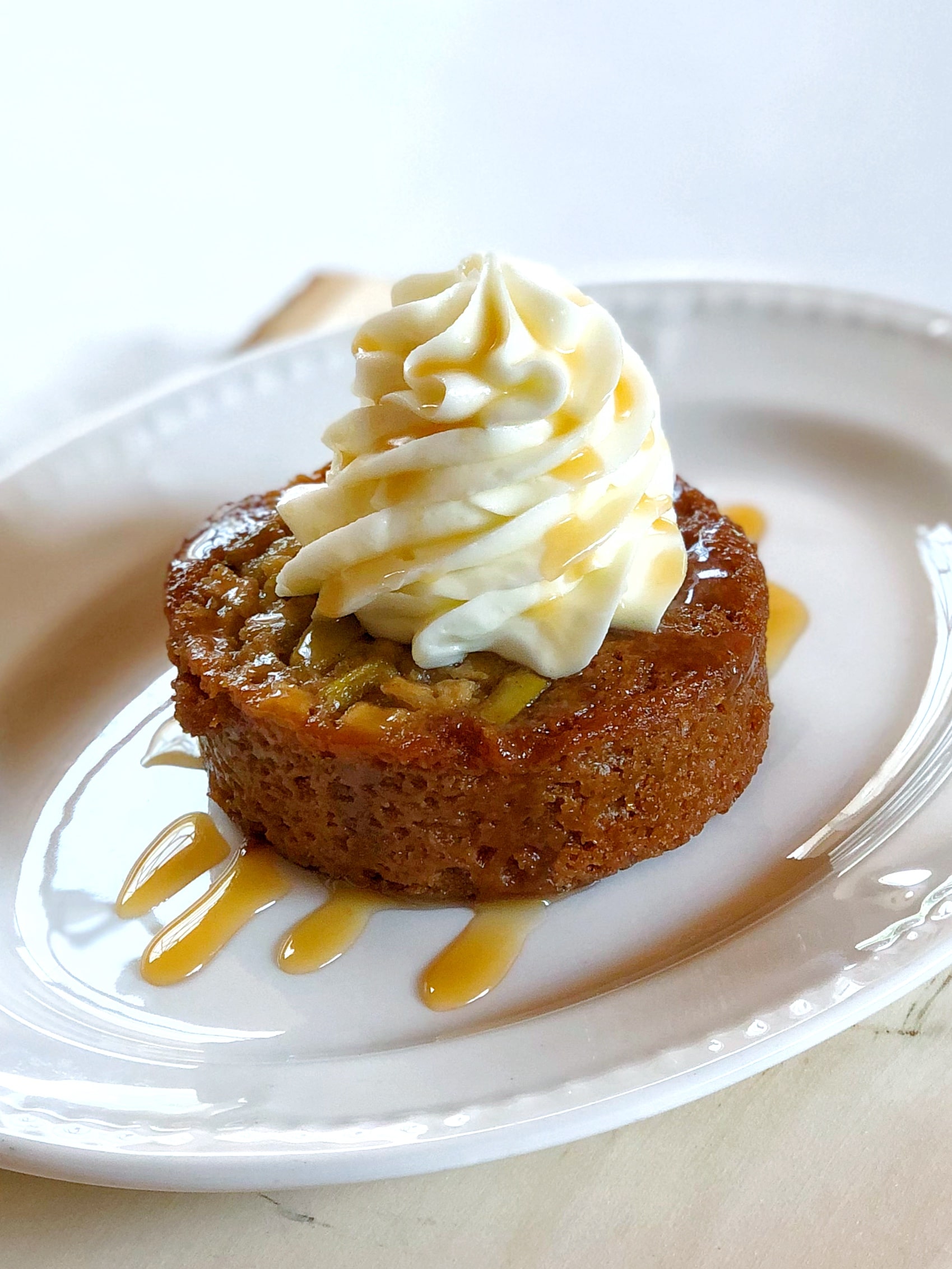 Johnny Appleseed’s Warm Apple Cake which is a spice cake with apples and a caramel sauce.