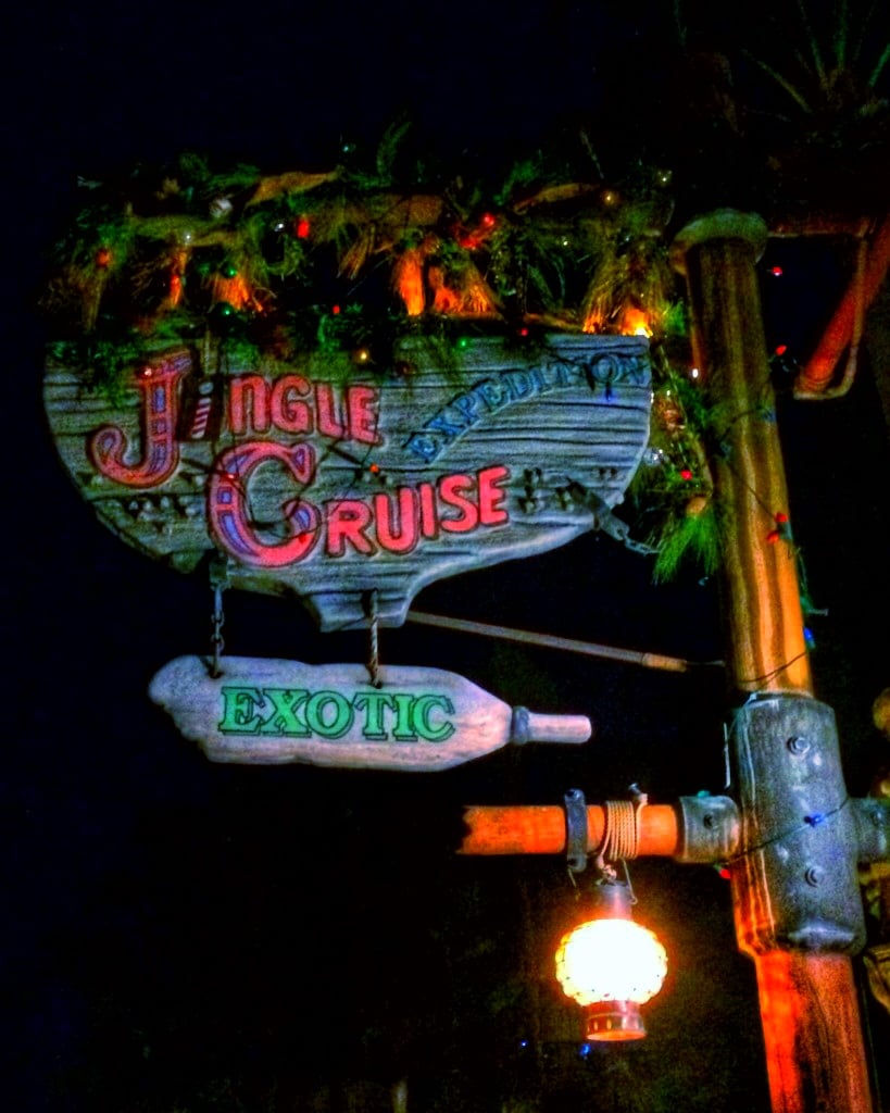 In Adventureland take a ride on the Jingle Cruise.