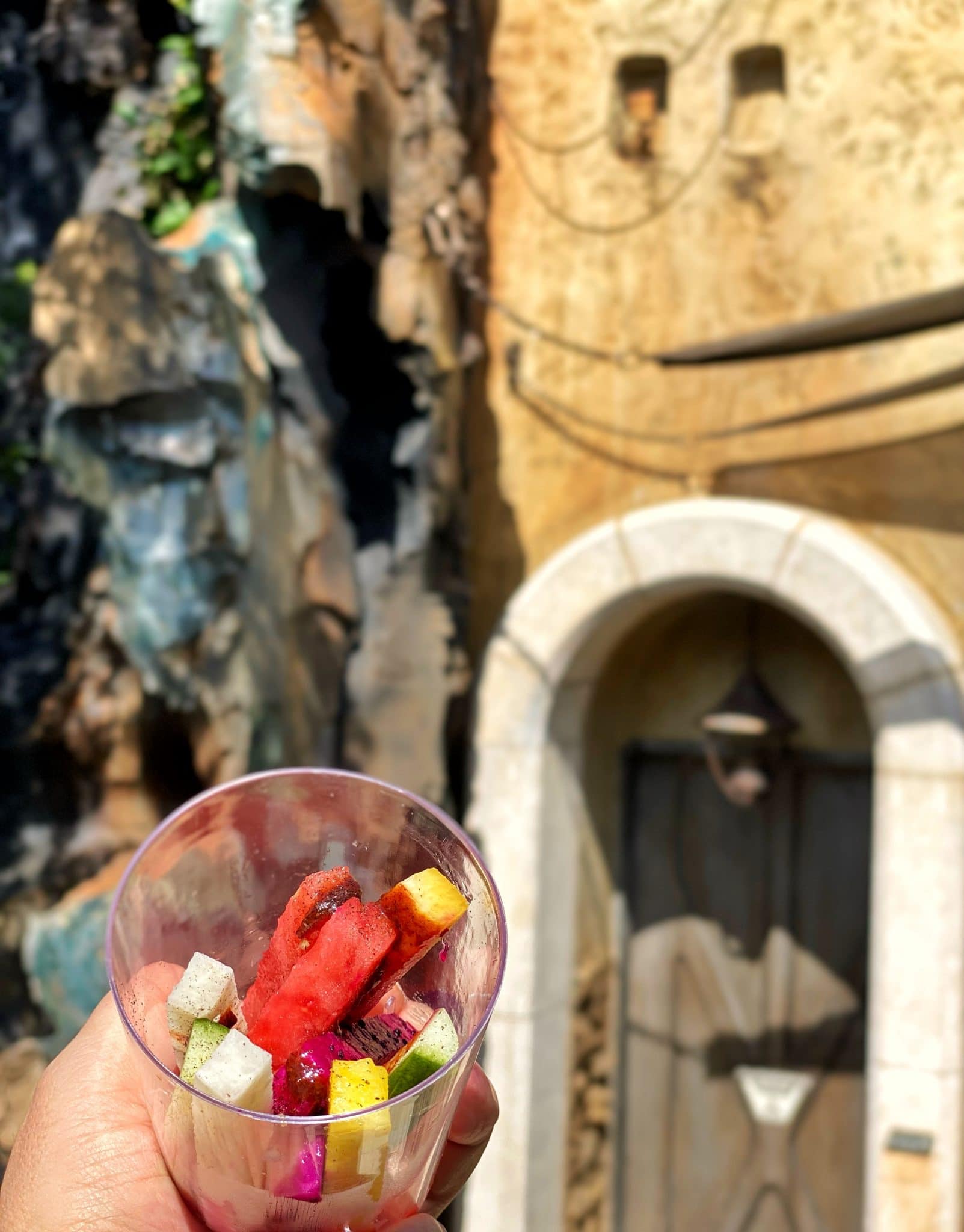 Disney Parks Blog recently announced some menu updates at Galaxy’s Edge on the planet of Batuu (in Walt Disney World). Most of the new items were meat-based, but we did get a unique fruit cup with tamarind sauce that’s totally vegan – at Ronto Roasters. As of right now, this is only available at Walt Disney World’s Ronto Roasters.