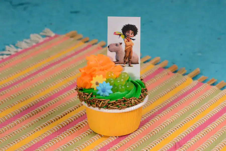 - Tres Leches Cupcake: Plant-based version of the traditional Colombian tres leches cake with vanilla cake soaked in almond, coconut, and oat milk, plant-based cinnamon, swirls of whipped icing, passion fruit boba, and a white chocolate piece featuring Antonio, Chispi, and Pico from Disney’s “Encanto” (New) (Plant-based)