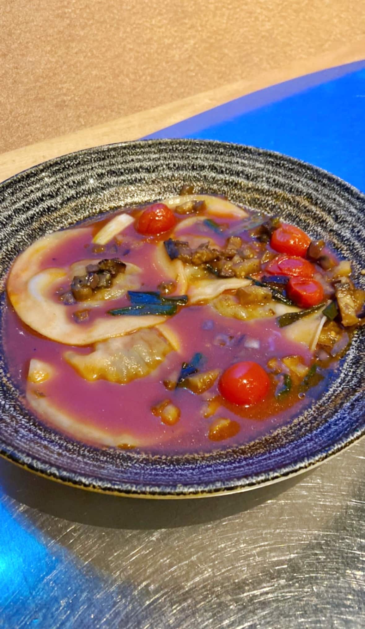 Next up, the new vegan entree at Coral Reef is Mushroom Ravioli – $26. A two dollar increase in the previous entree, this features roasted mushroom ravioli with scallion, blistered tomatoes and tomato-lavender broth and is also plant-based as-is. Brittani said this tasted almost like a minestrone soup in flavor and she couldn’t really detect the lavender (which sounds like a good thing to me). It was not served with a spoon but looks like it probably needed one. It’s definitely an unusual entree, but I do love mushrooms, so it seems up my alley.