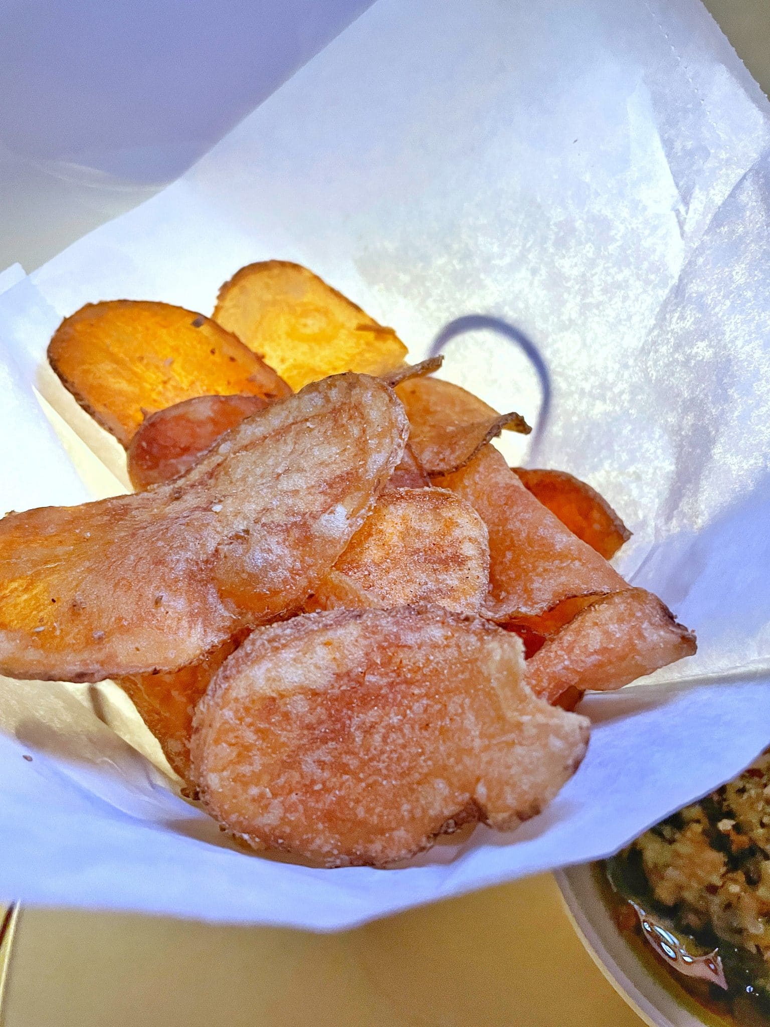 Sci-fi Dine-in Theater has had some menu changes over the years, offering tofu lettuce cups and an island “crab” cake appetizer in the past. Many Disney restaurants have moved to offering an Impossible burger as their vegan option, but with table service locations, they do try to dress it up a little. As of June 2022, Sci-fi now offers a new completely vegan spinach artichoke dip, which is, yes, I’m going to say it, out of this world. (Let me note that as you can see above, lighting is not ideal for food photos in Sci-fi, so I did my best with an assist from my daughter for some extra lighting.)