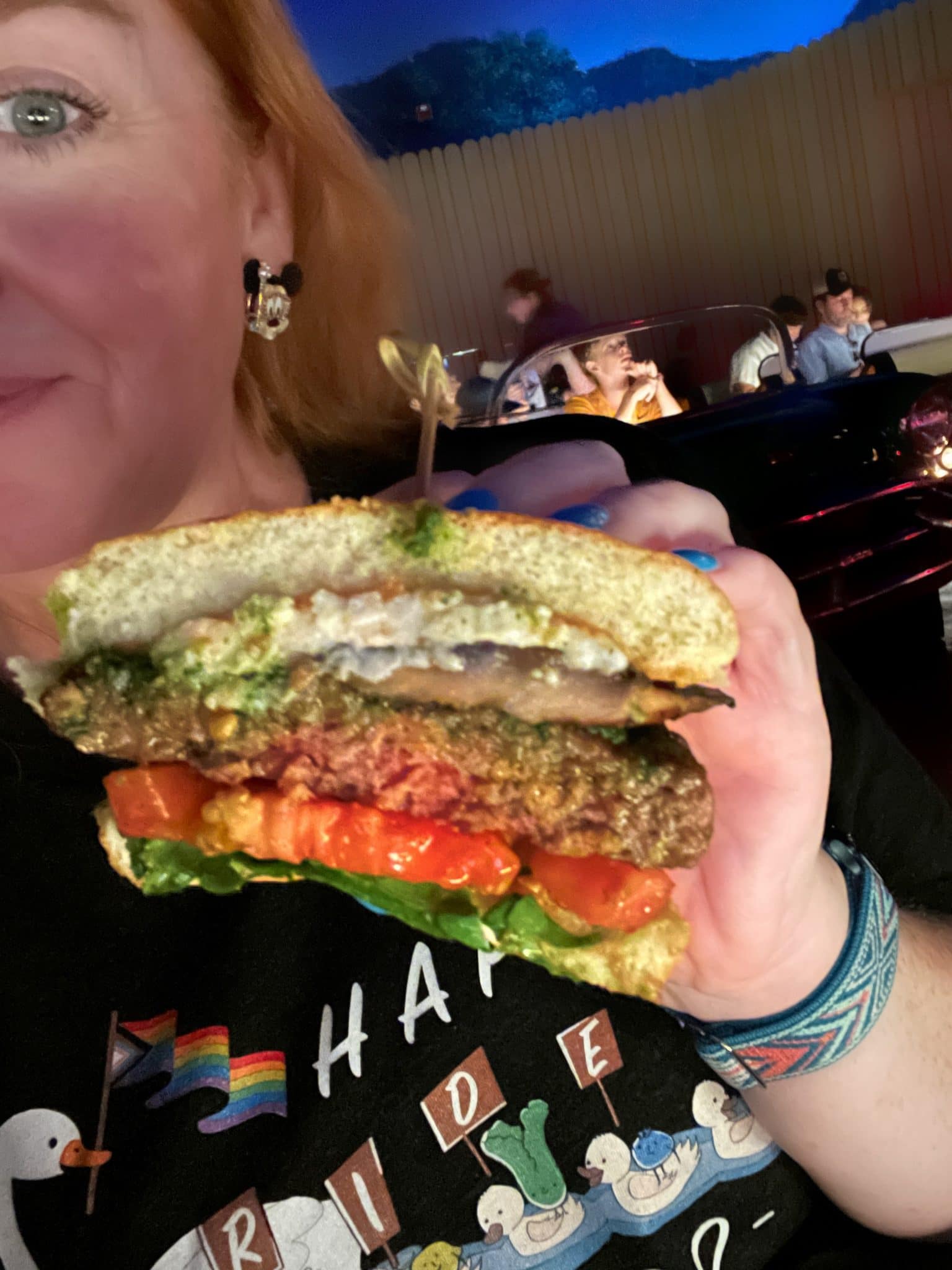 The Sci-fi Dine-in Theater has always been one of my absolute favorite spots in Walt Disney World – and now they have an updated vegan menu. For those new to visiting Walt Disney World, Disney’s Hollywood Studios was once a tribute to the “Hollywood that never was and always will be.” The front of the park (still) pays homage to old Hollywood with neon and art deco, while the rest of the park offered a behind-the-scenes look at movie-making with the backlot tour and soundstages. Sci-fi Dine-in Theater offered a fun look at the drive-in movie craze of the 1950’s, letting guests dine in “cars” while watching old sci-fi B-movie clips and news stories of the day. For those who have been there often (like my family) we have the clips memorized and will often recite the lines as they happen.
