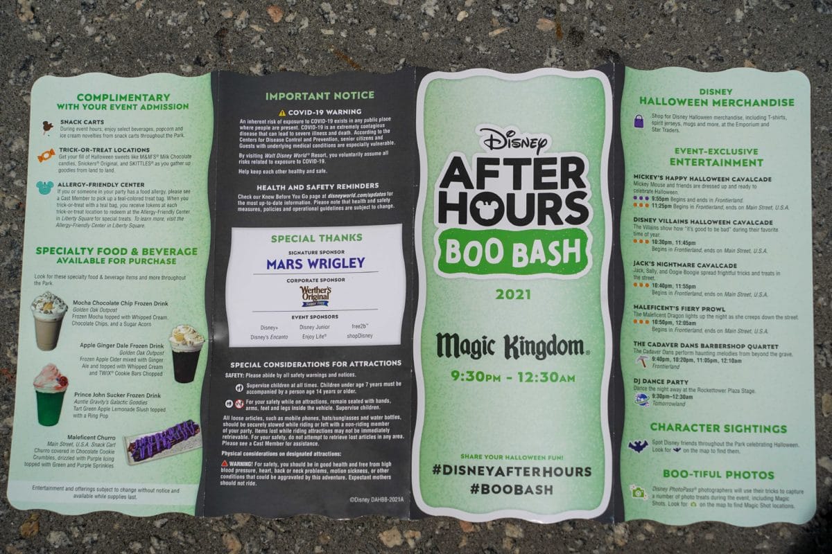 You may recall, a Disney After Hours event includes complimentary snacks and drinks: popcorn from the popcorn carts, ice cream bars from ice cream carts, and bottled beverages such as water, soda, and PowerAde. Additionally several attractions will be open, and character spots will be available for photo ops and character cavalcades appear down Main Street, U.S.A. with some familiar friends. With Boo Bash, treat stations will also be located around Magic Kingdom offering candy – including some vegan allergy-friendly options similar to Mickey’s Not So Scary Halloween Party.